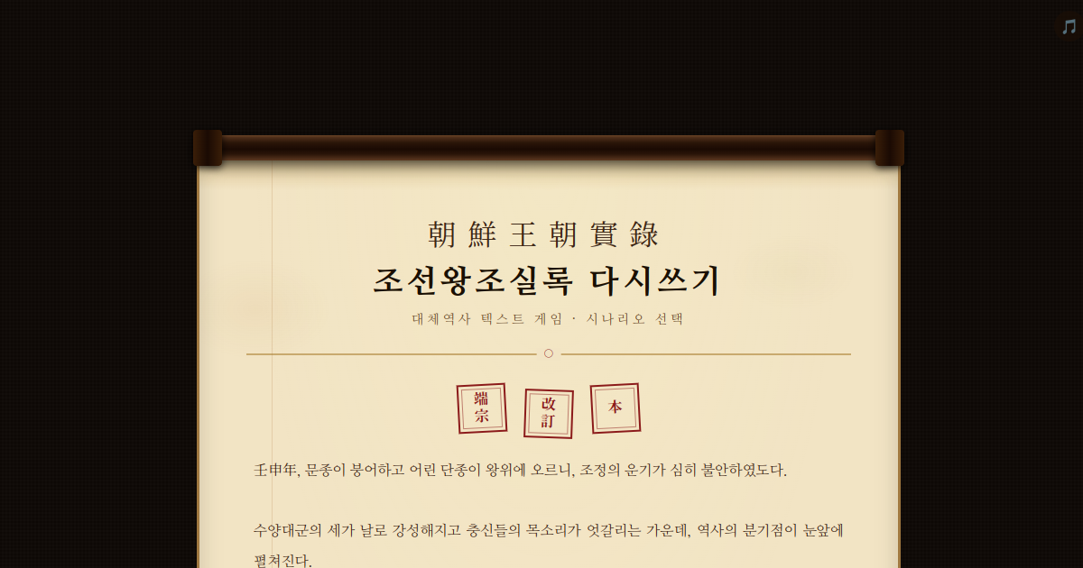 당신의 선택에 따라 AI 사관이 새로 조선왕조실록을 작성합니다. 현재는 단종편이 구현되어 있습니다.